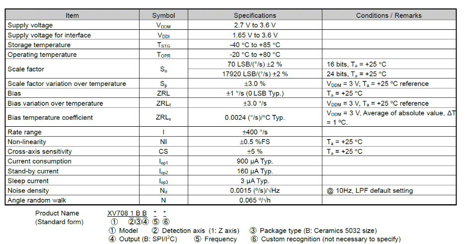 用于自动化机械的数字输出型陀螺仪传感器XV7081BB